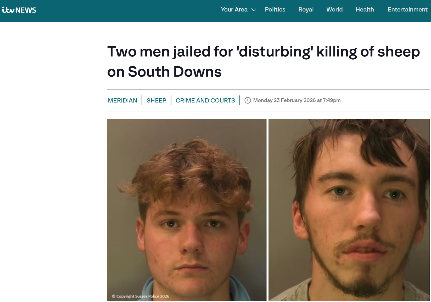 23.02.26: Justice for Eunice: Mainstream media coverage of South Downs Sheep Killers sentencing